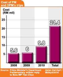 Menurut respons Jabatan Perdana Menteri yang diperoleh hari ini, Najib dan Rosmah telah membelanjakan RM1.7 juta pada 2008, RM4.8 juta (2009), RM5.1 juta (2010) dan RM5.4 juta sehingga Jun tahun ini.